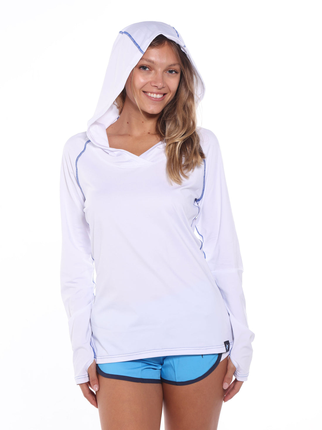 Aqua Performance lightweight UV protection hoody. Soft, poly spandex wicking fabric with UV50 Sun Protection. ...