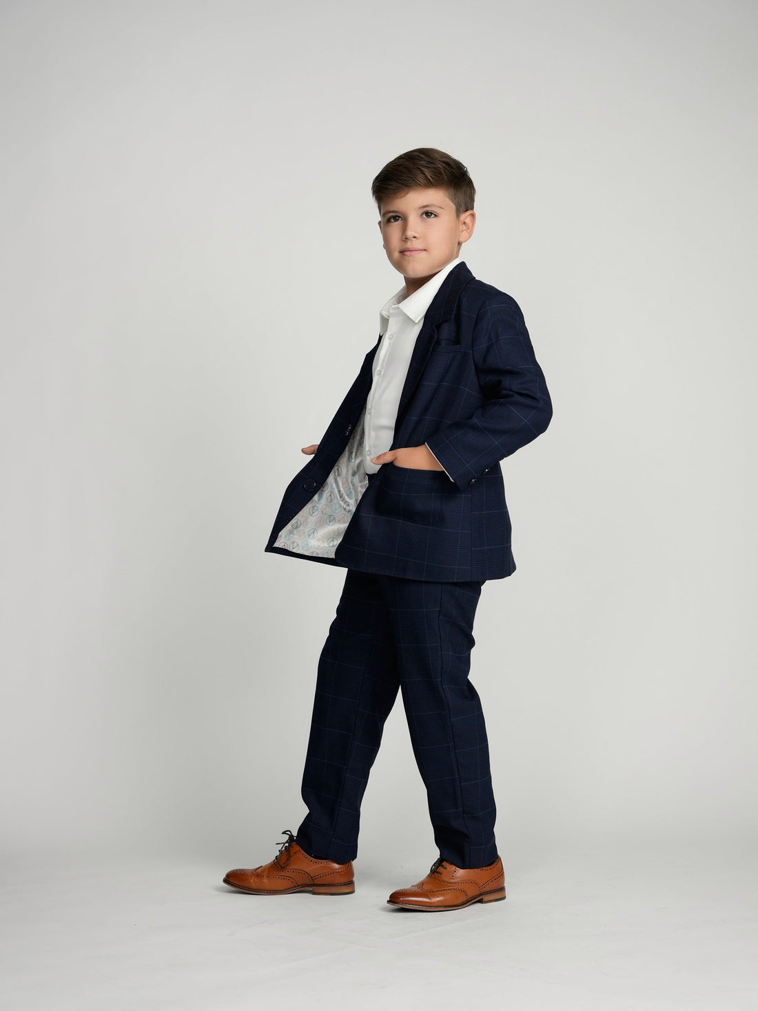 Our tailored navy plaid windowpane blazer for boys makes sure that every boy feels confident and...