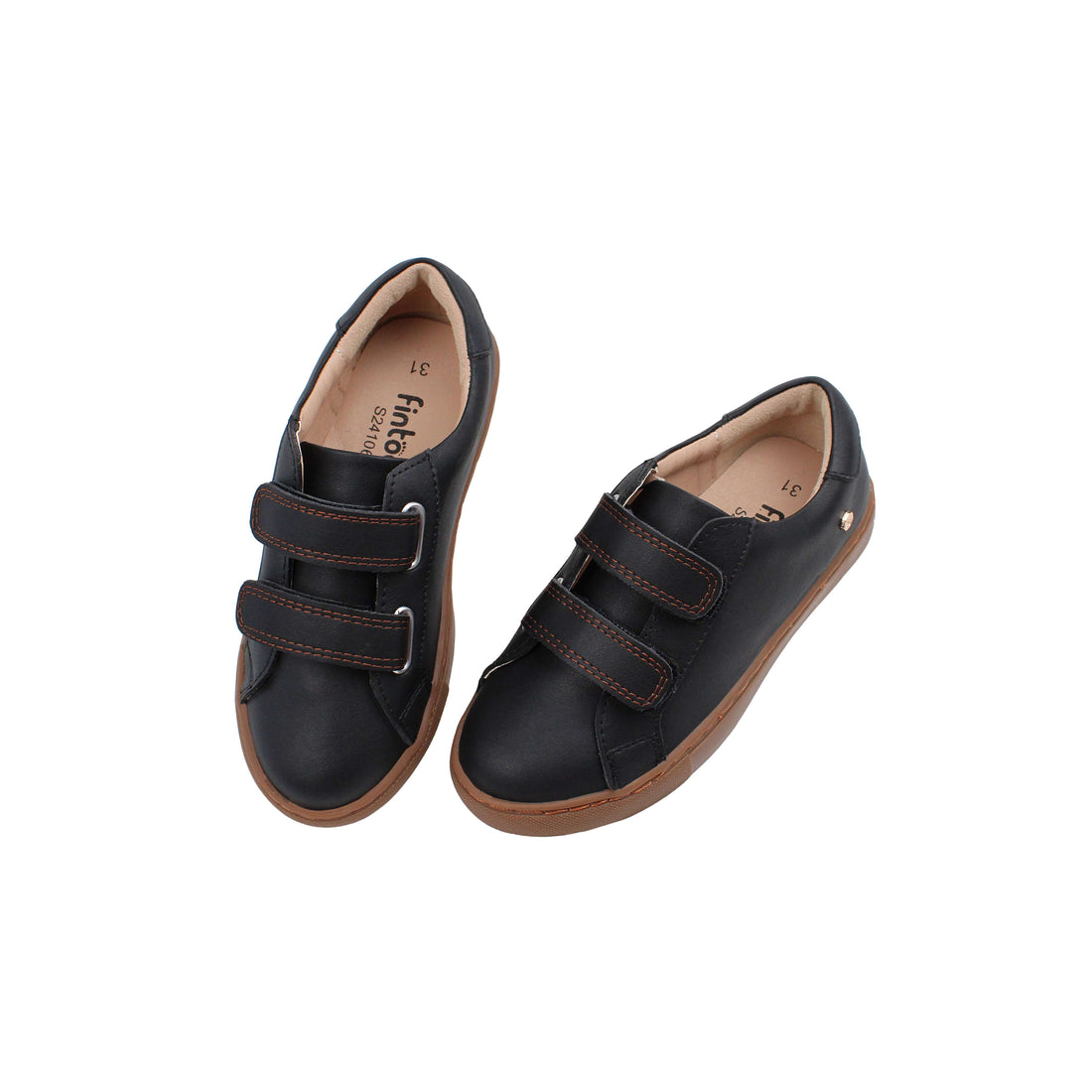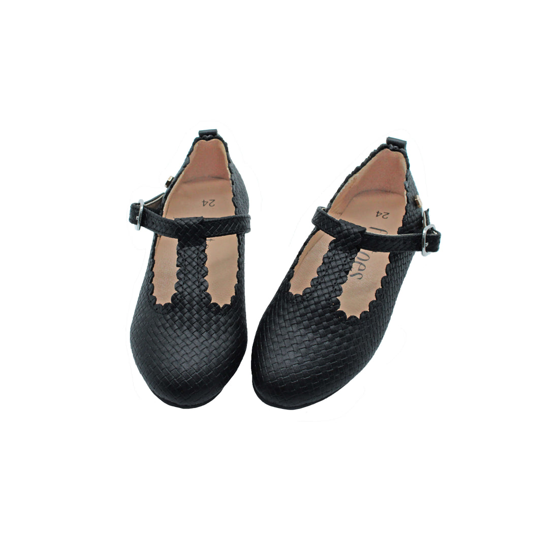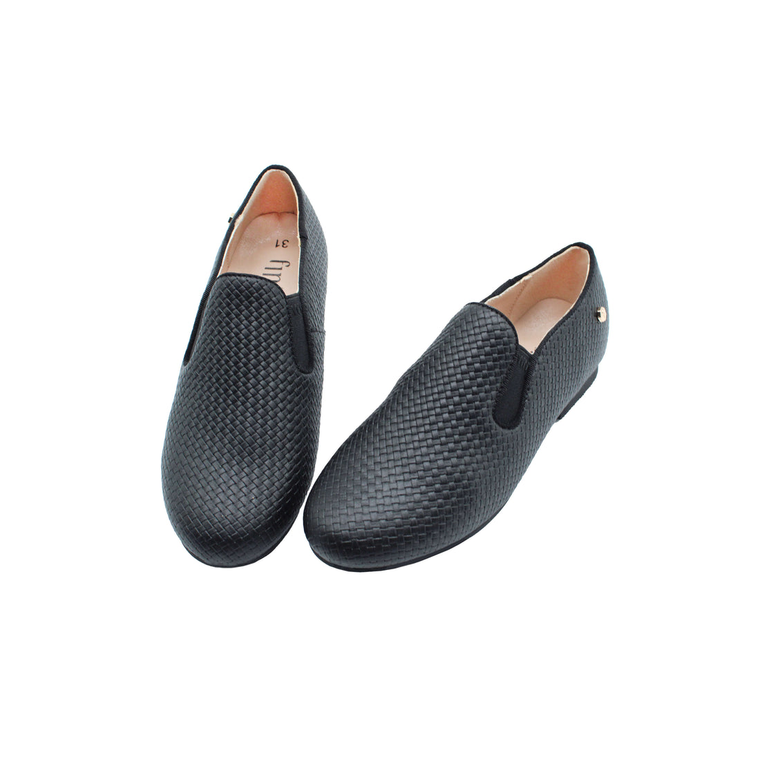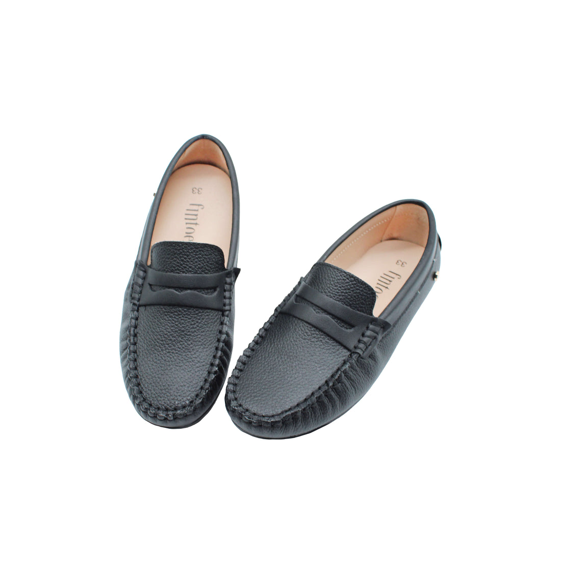 Black leather boys weekday step-in shoe / pebbled leather front and back