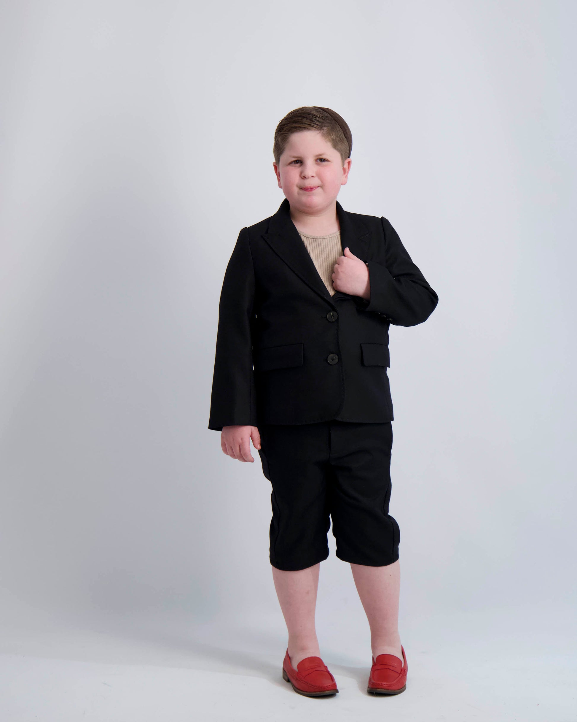 Our tailored black blazer for boys makes sure that every boy feels confident and comfortable for every occasion. Pair with our button dress shirt, matching dress pants or short dress pants for a formal look or wear with our casual shorts and collared sweater for a more laid back vibe. Wide sizes are 2 inches wider than regular sizes. See sizing chart for reference.