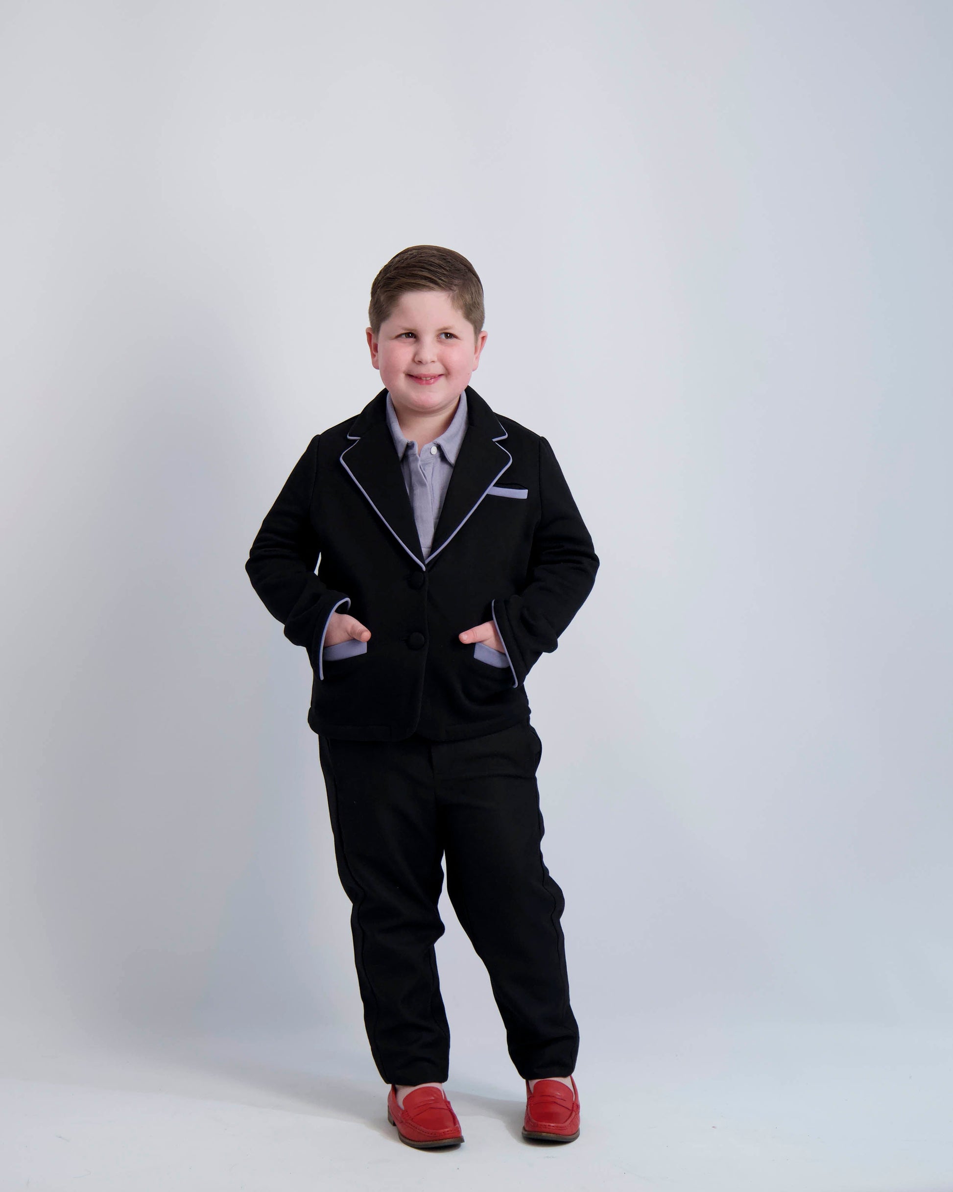 A classic two-button casual knit blazer with notched lapels made from a cotton blend keeps him looking handsome wherever the day goes. This casual blazer has contrast trim on all three pockets and matching contrast buttons. The casual blazer has a relaxed comfortable fit.