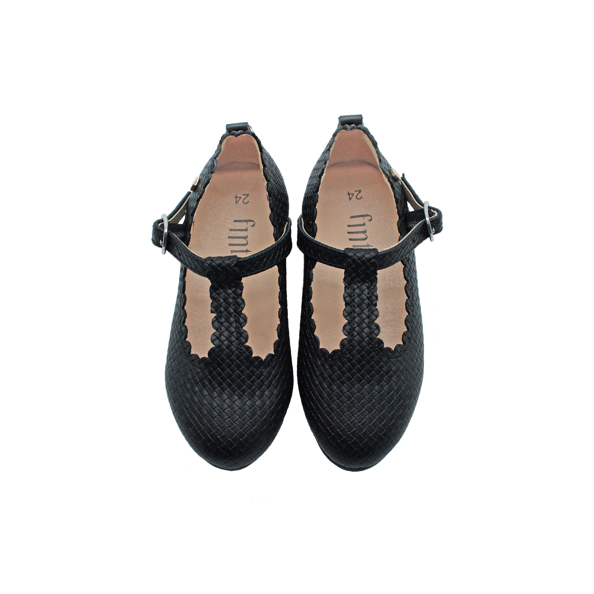 Black weaved designed leather T strap girls dress shoe