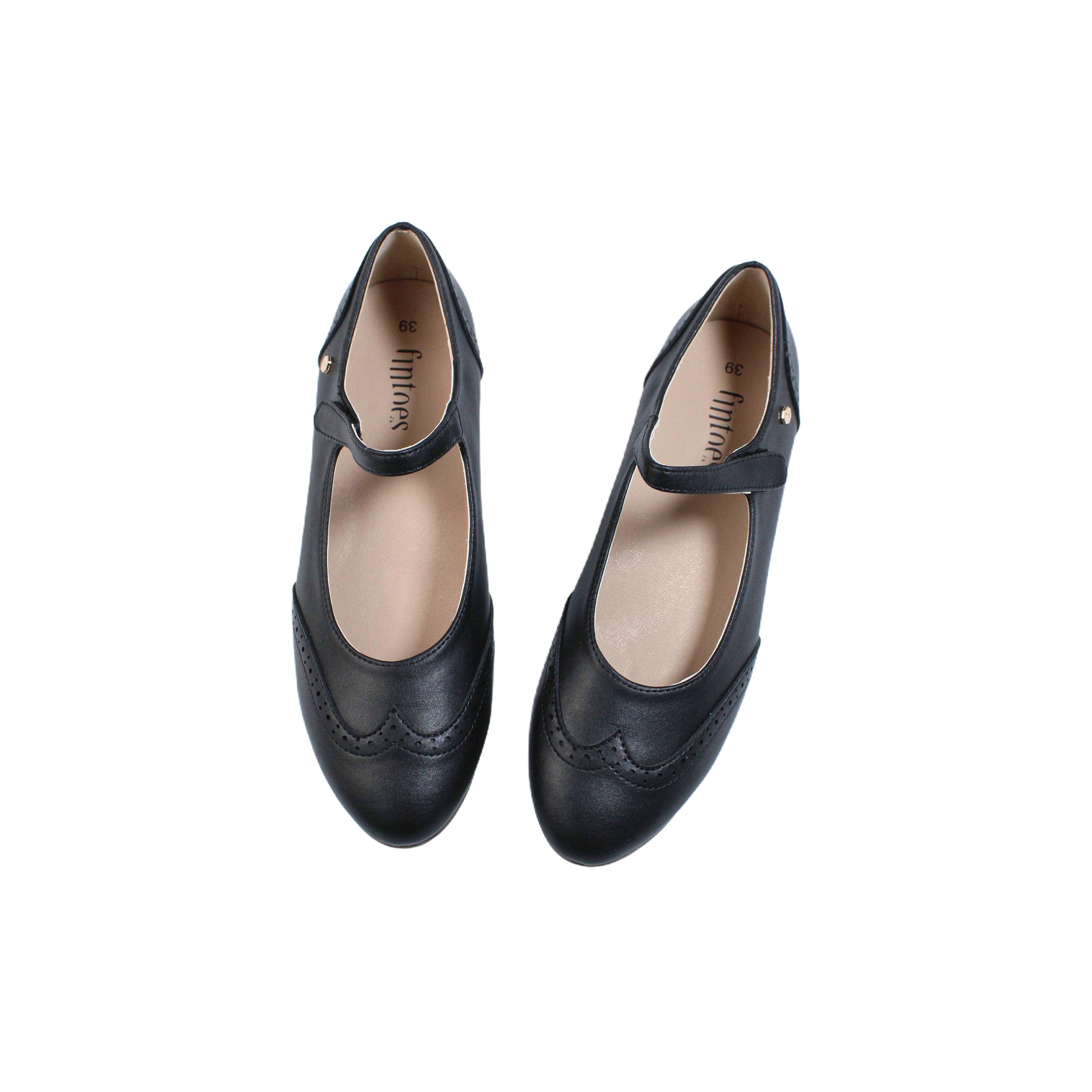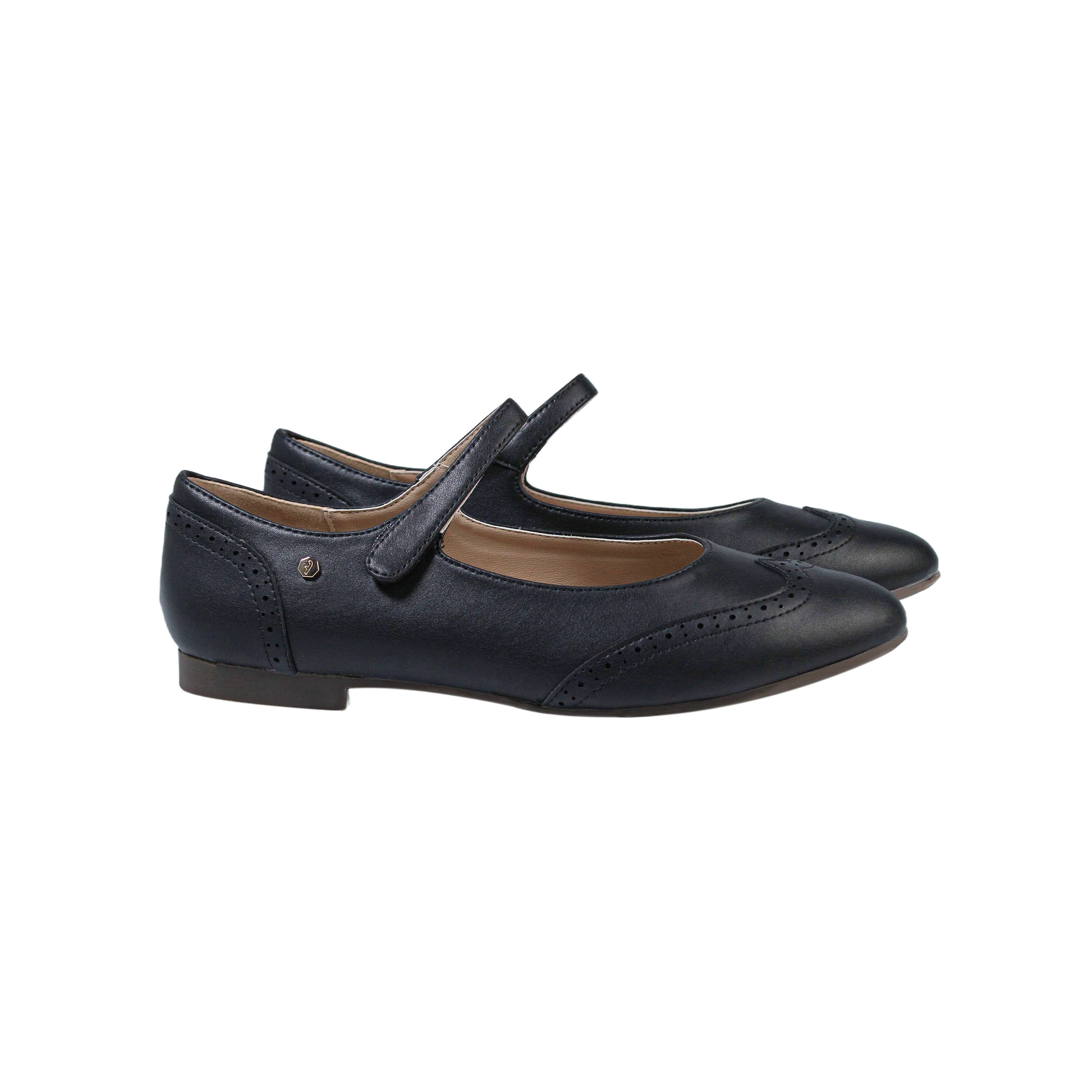 Black leather Mary Jane / wing tip girls dress shoe