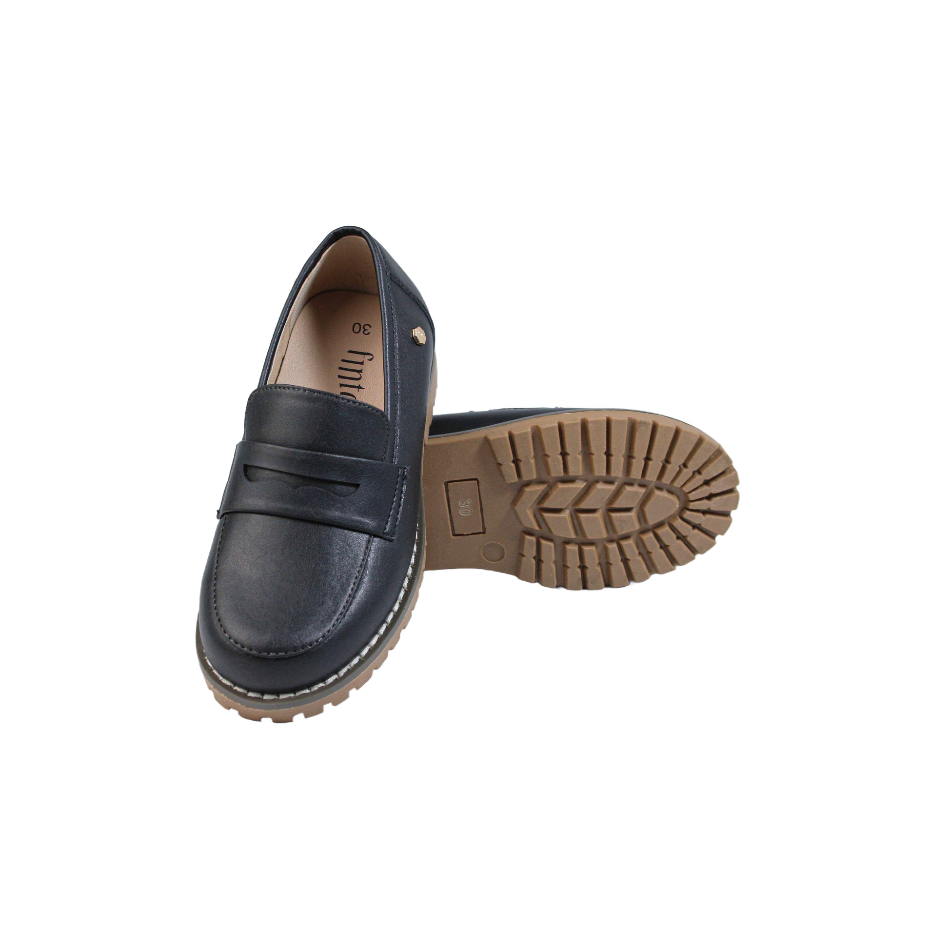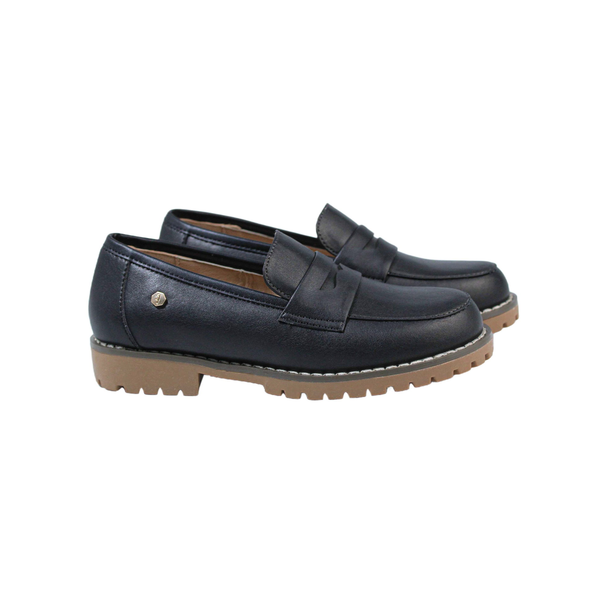 Black leather chunky loafer