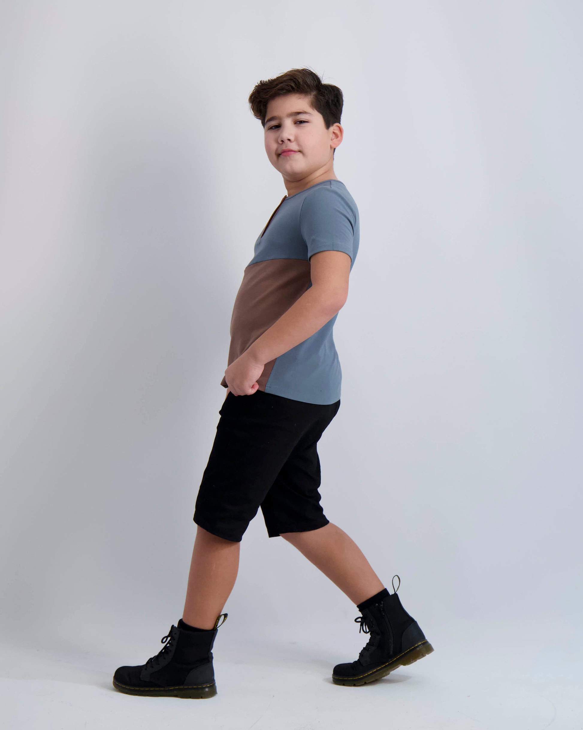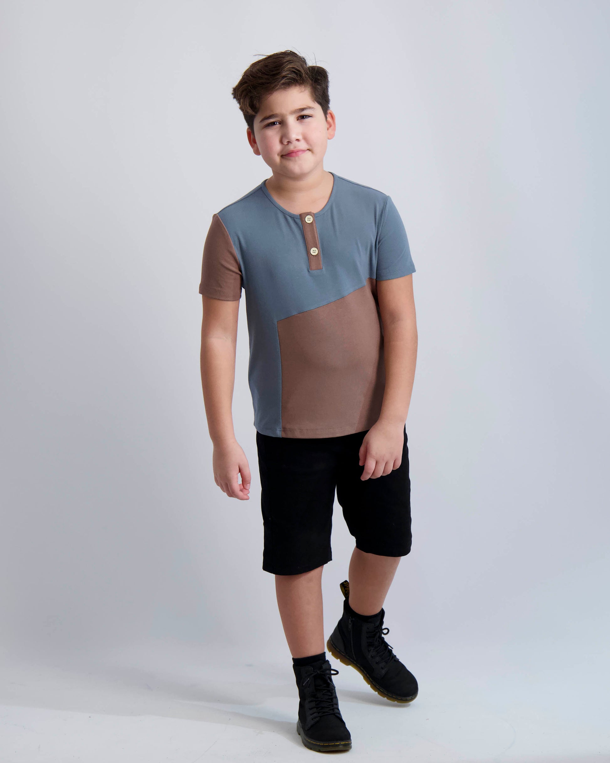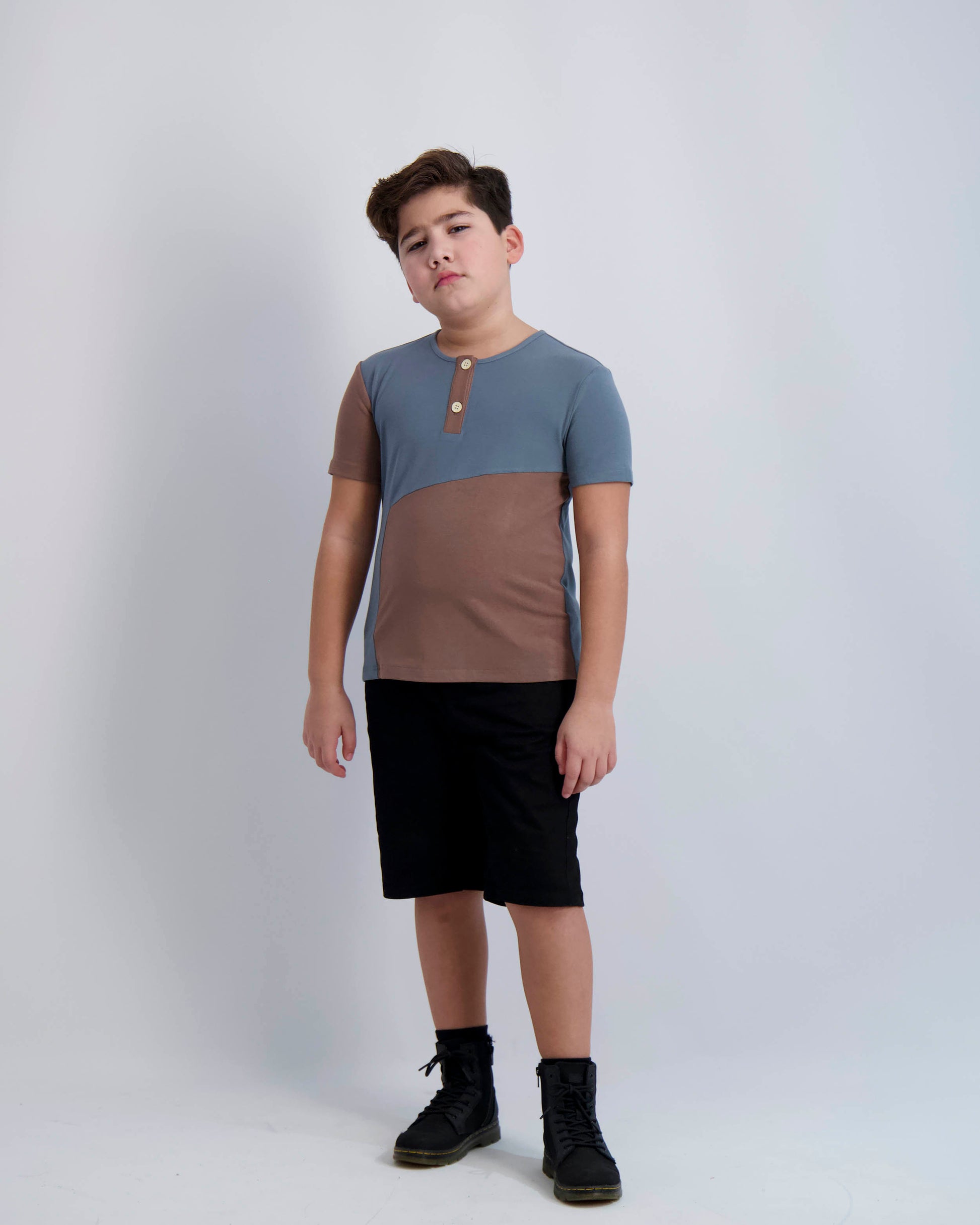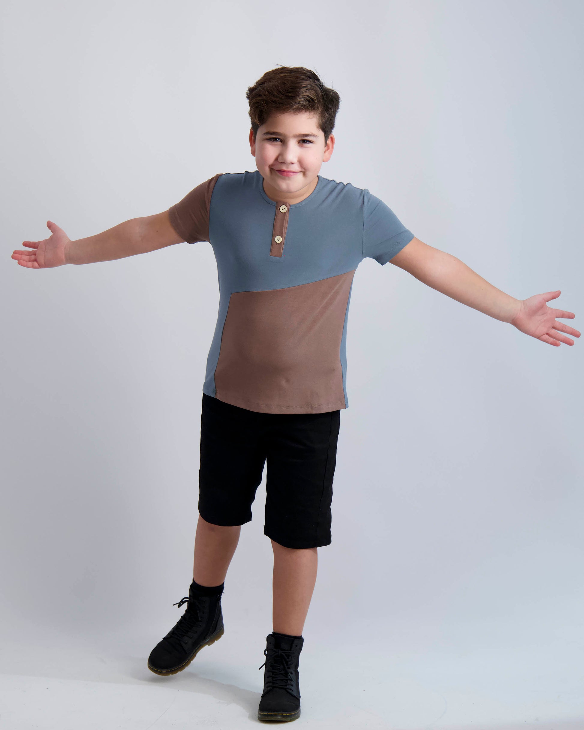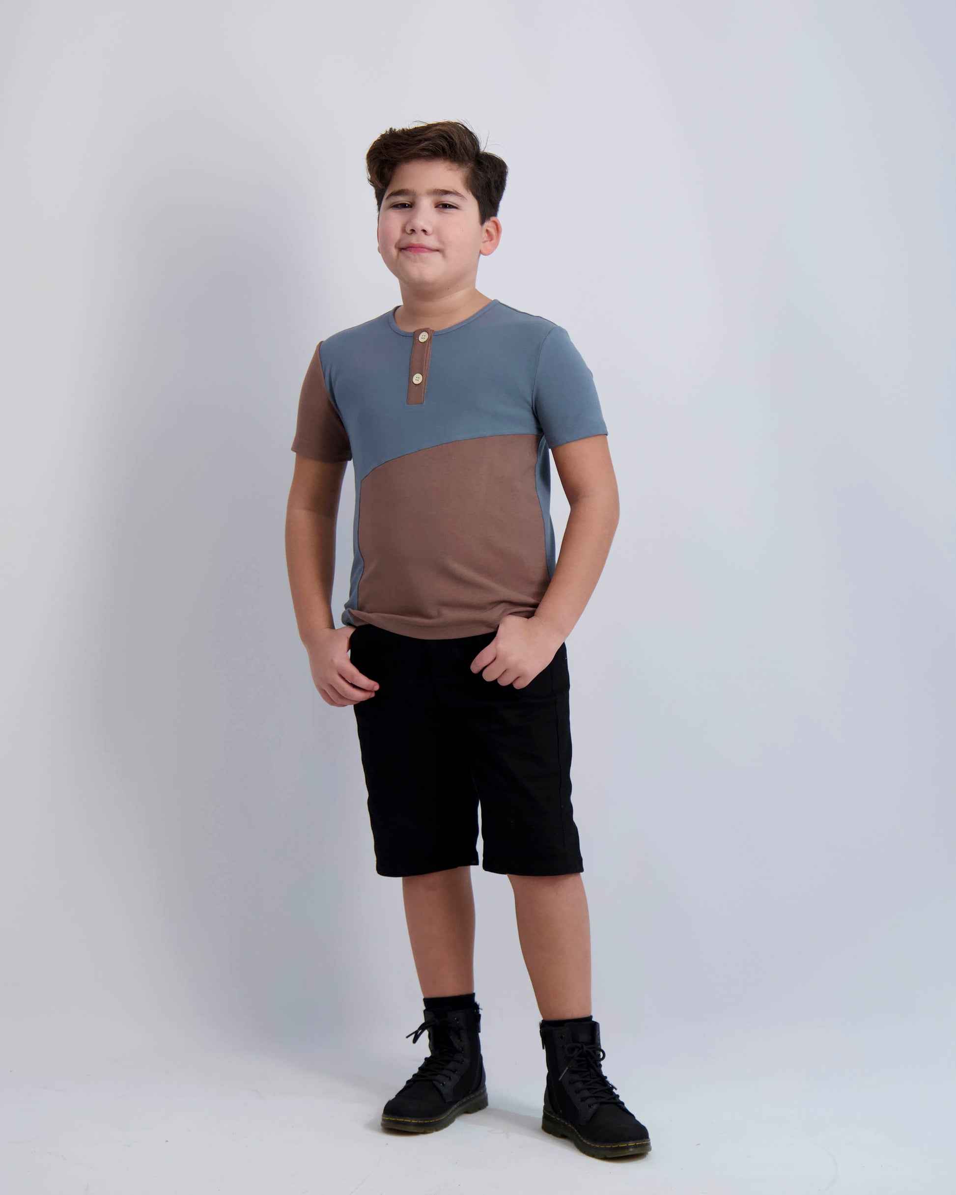 This two button blueberry and mocha contrast tee is made from a soft cotton/spandex blend tee with abstract contrast color design makes it the perfect tee for everyday wear. Pair with our everyday casual shorts or your favorite pair of jeans. Wide sizes are 2 inches wider than regular sizes. See sizing chart for reference.