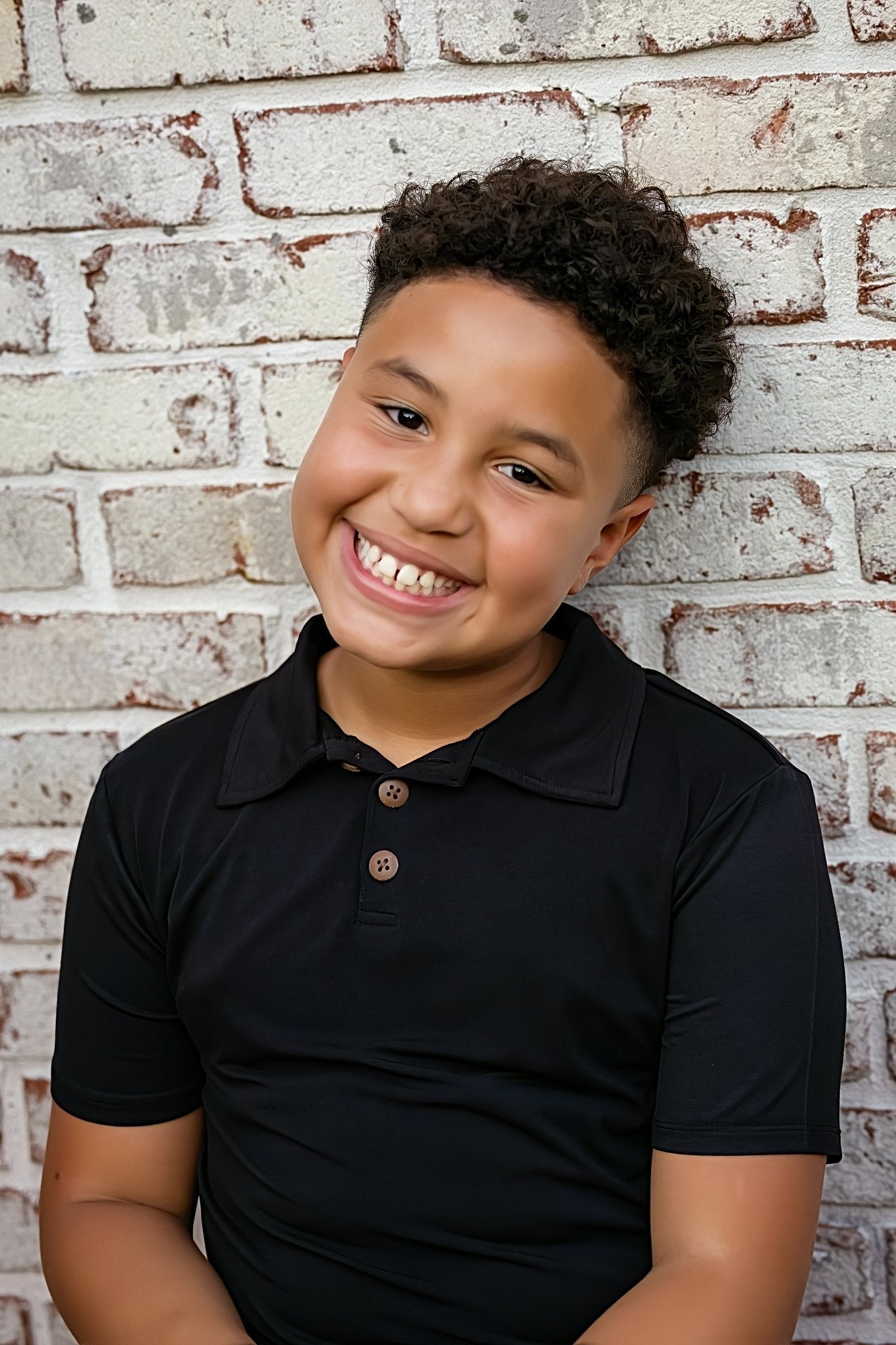 Introducing the Boys Polo in Moonless Night from Twinflower Creations. It's crafted from a 95% bamboo and 5% spandex blend for the perfect combination of softness, breathability, and flexibility. Perfect for any boy's wardrobe, it's available in a vibrant Barbados Blue that reflects the joy and energy of childhood. Let your young explorer set sail for adventure in comfort and style.