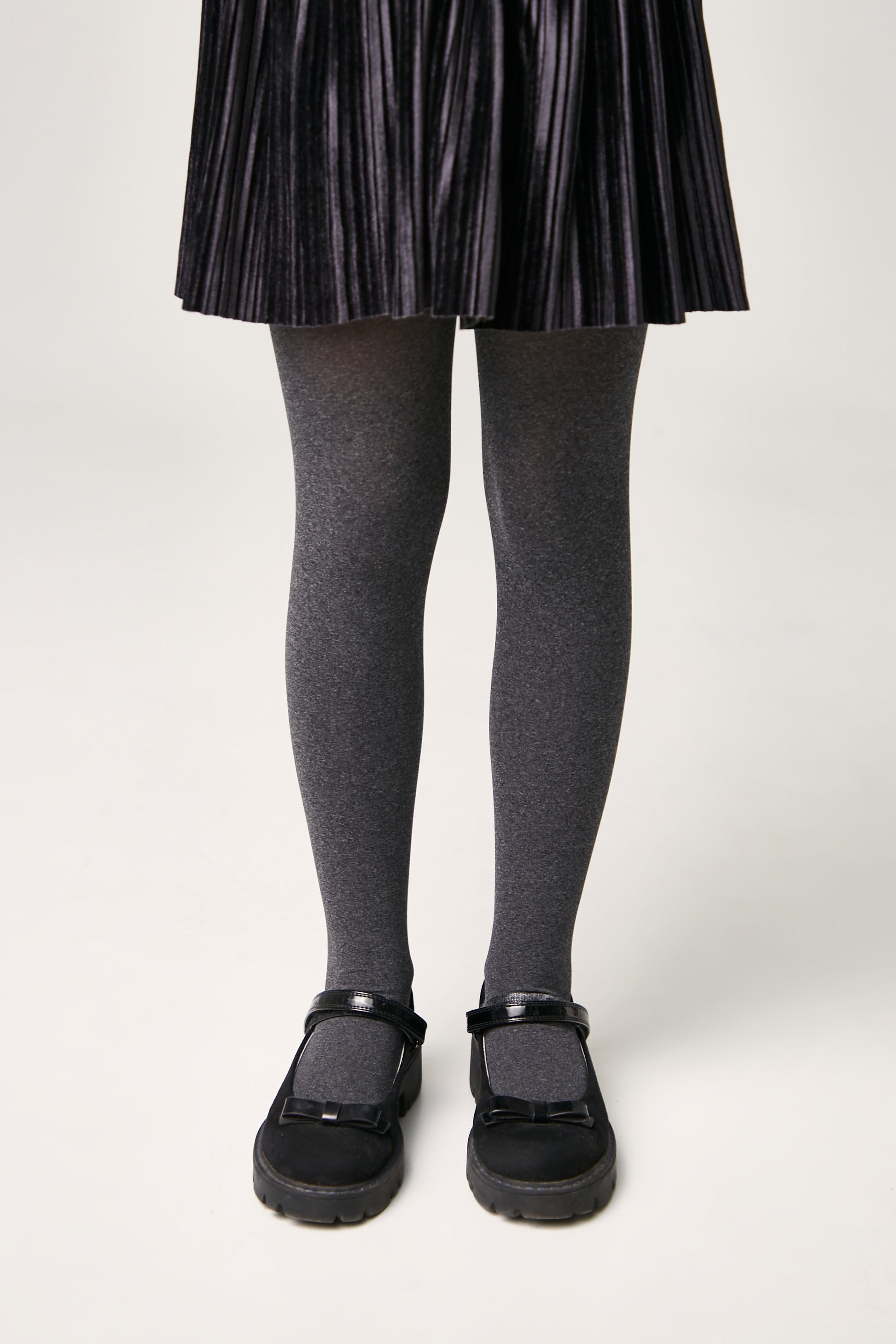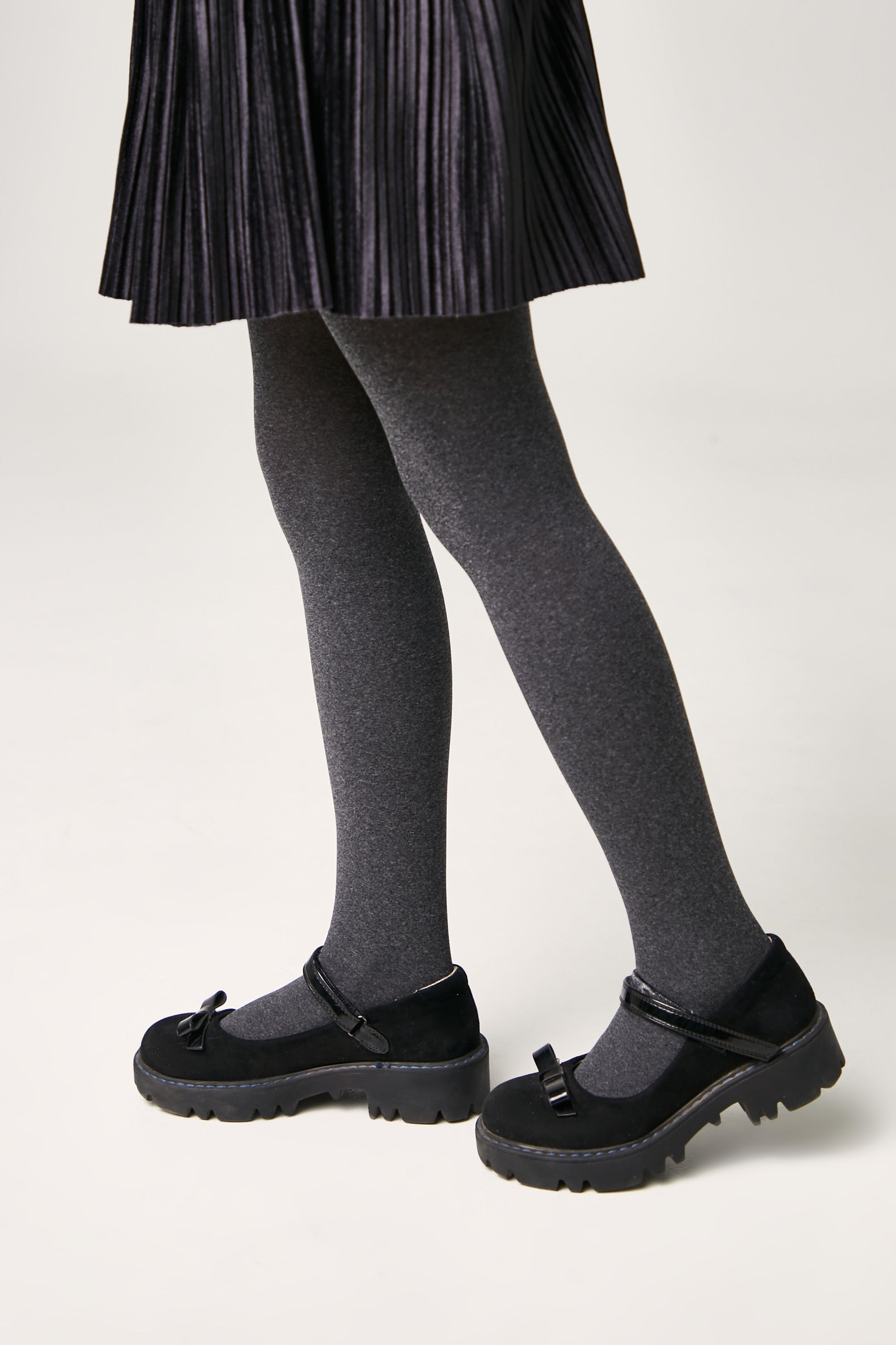 Dense melange tights MELANGE microfiber are soft and elastic, stretch well and provide warmth. A comfortable wide waistband securely holds the tights in place.