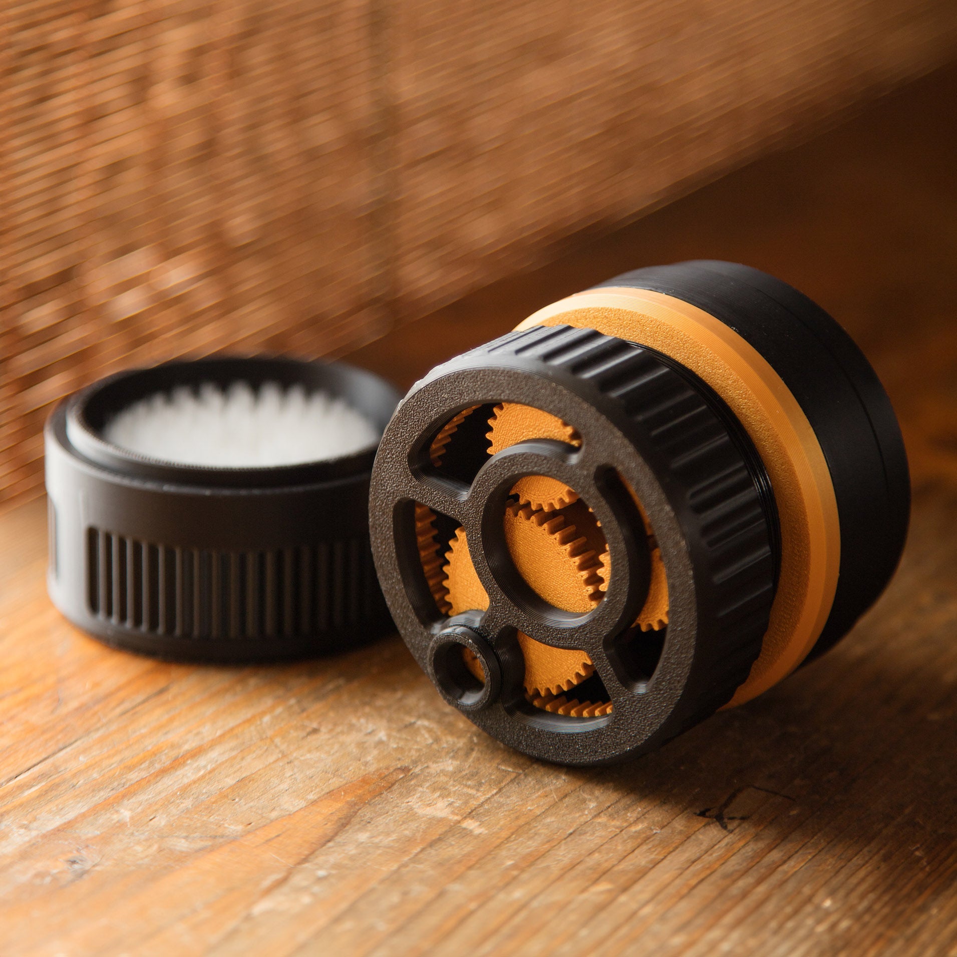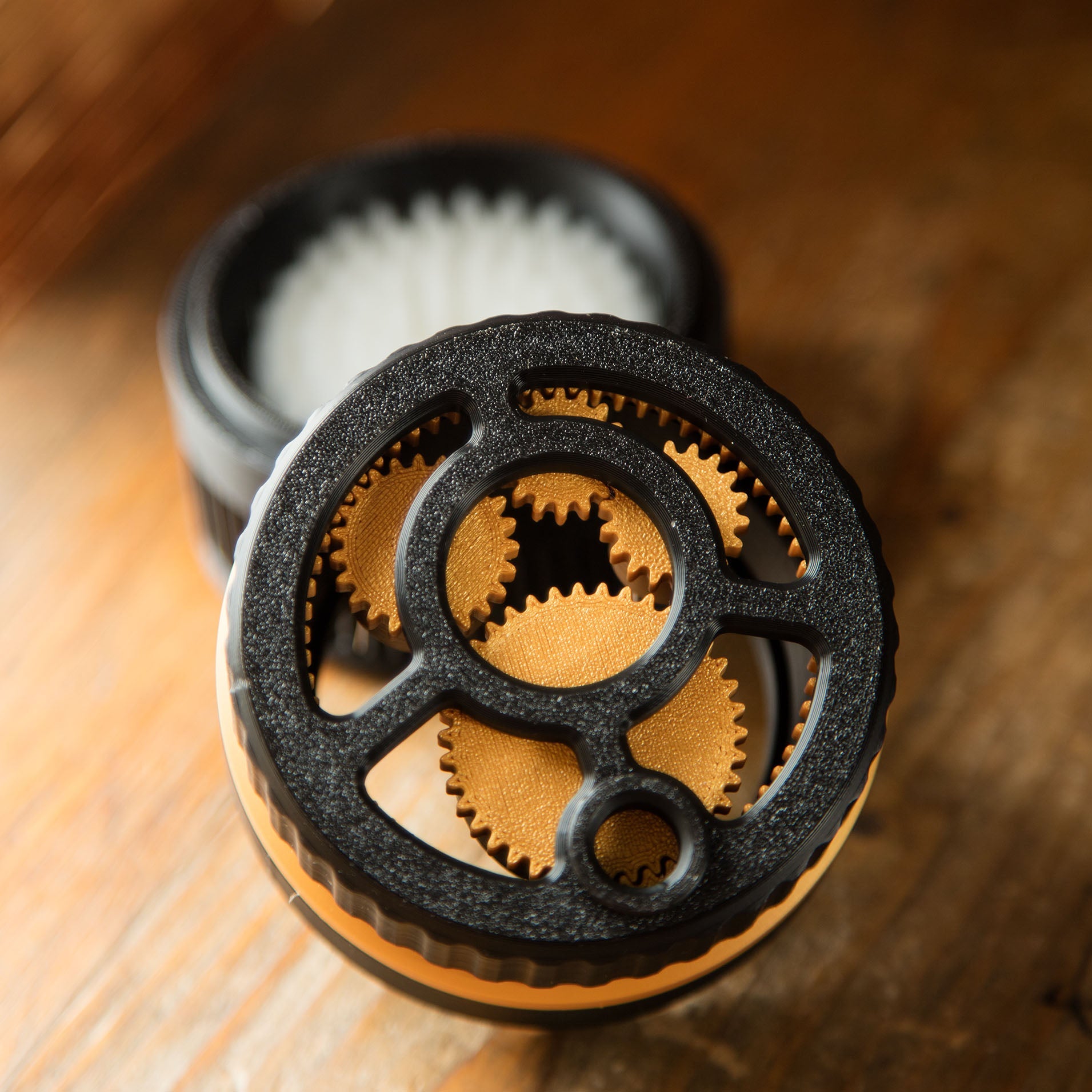 Innovative Planetary Gear Design: Ensures precise distribution of loose powder like coffee grounds or makeup powder.