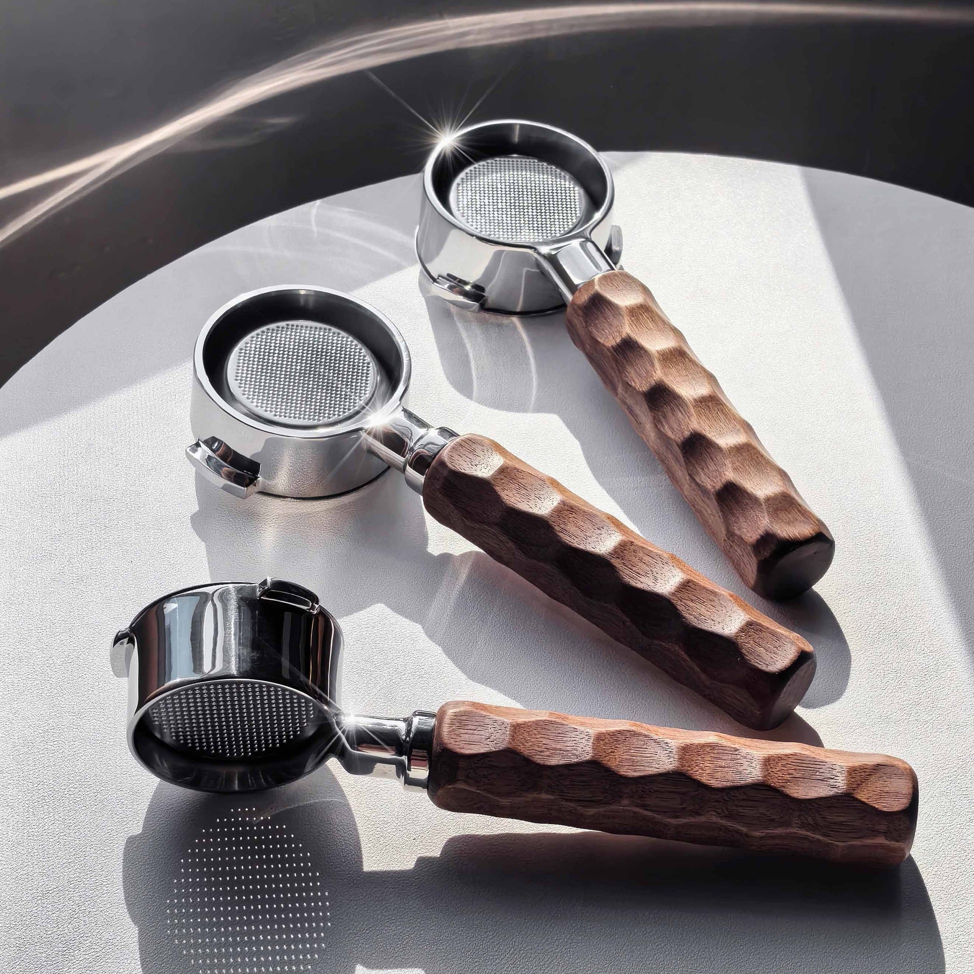 Versatile Design: Available in bottomless and spouted styles. Compatible with 58mm/54mm/51mm sizes. Features double and triple ear options. 304 stainless steel construction with mirror-polished finish.