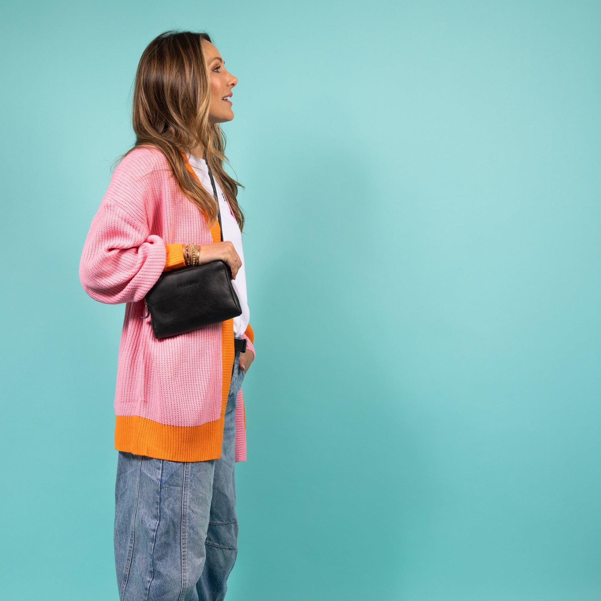 The hip bag that will change the way to live life is here. This is you new best friend for a more empowered and hand-free lifestyle. This is the perfect size for your phone, wallet, sunglasses and all those other essential items you want to have with you at all times. You can wear it around your waist, as a high cross body bag, over your shoulder or even as a cute clutch without the strap.