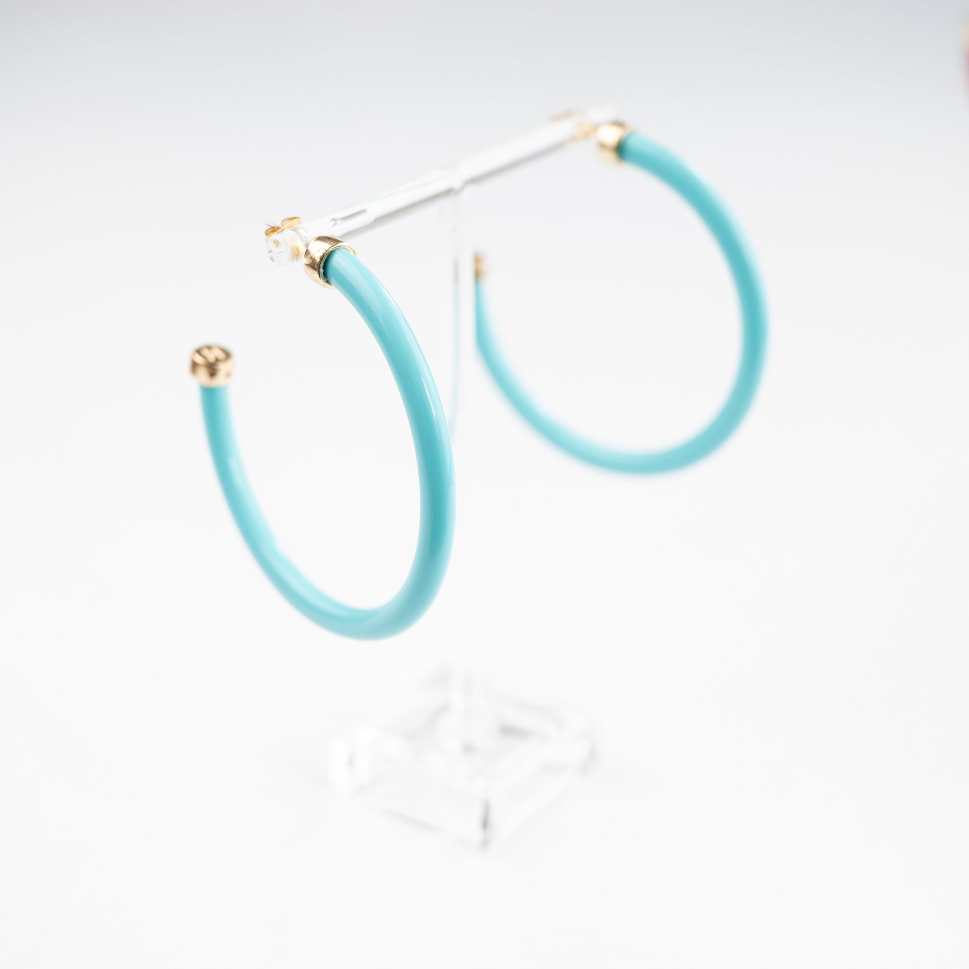 Add a pop of color to your wardrobe with our 2-inch Hoo Hoops! These hoops are the ultimate light weight statement earrings, perfect for all day wear.