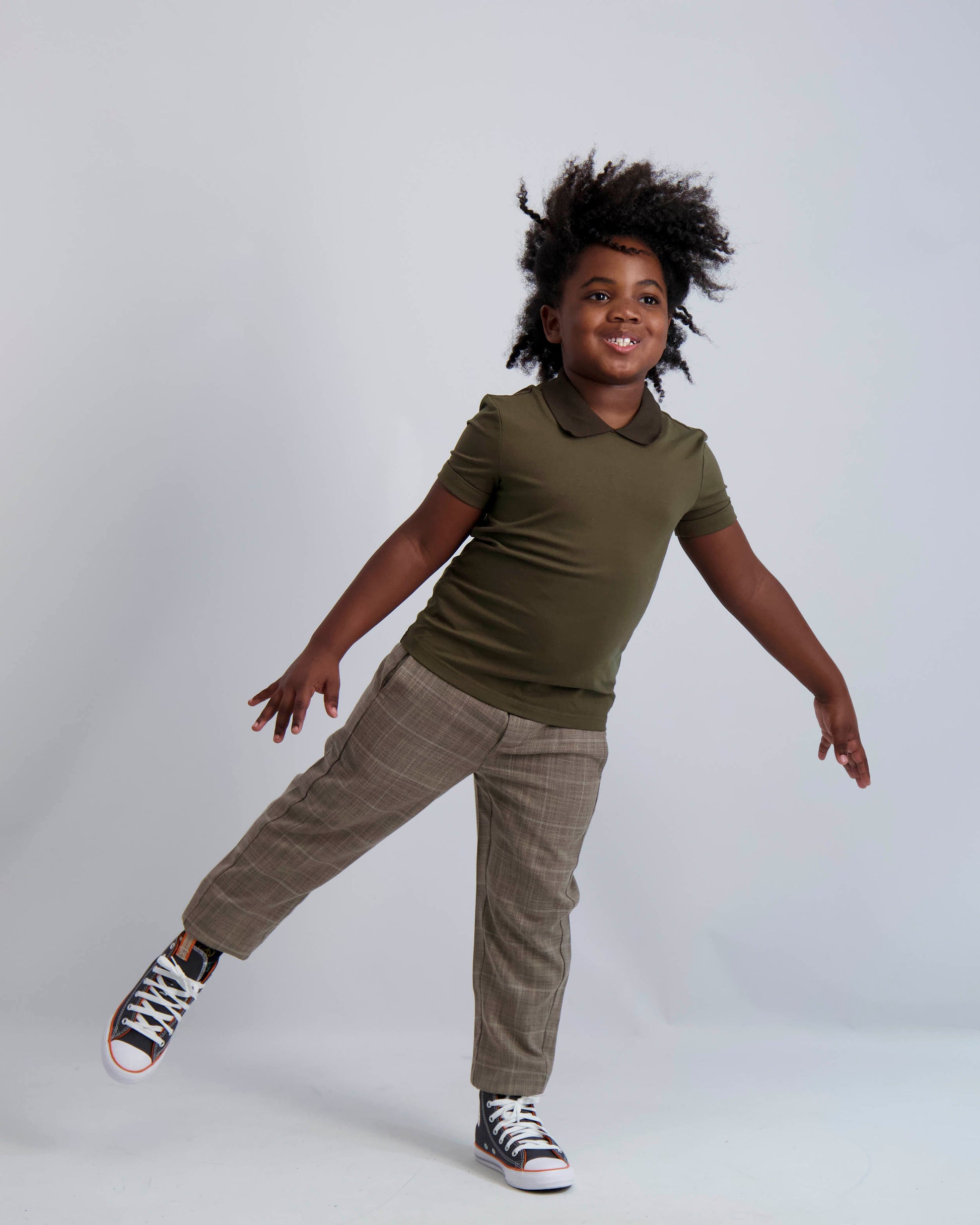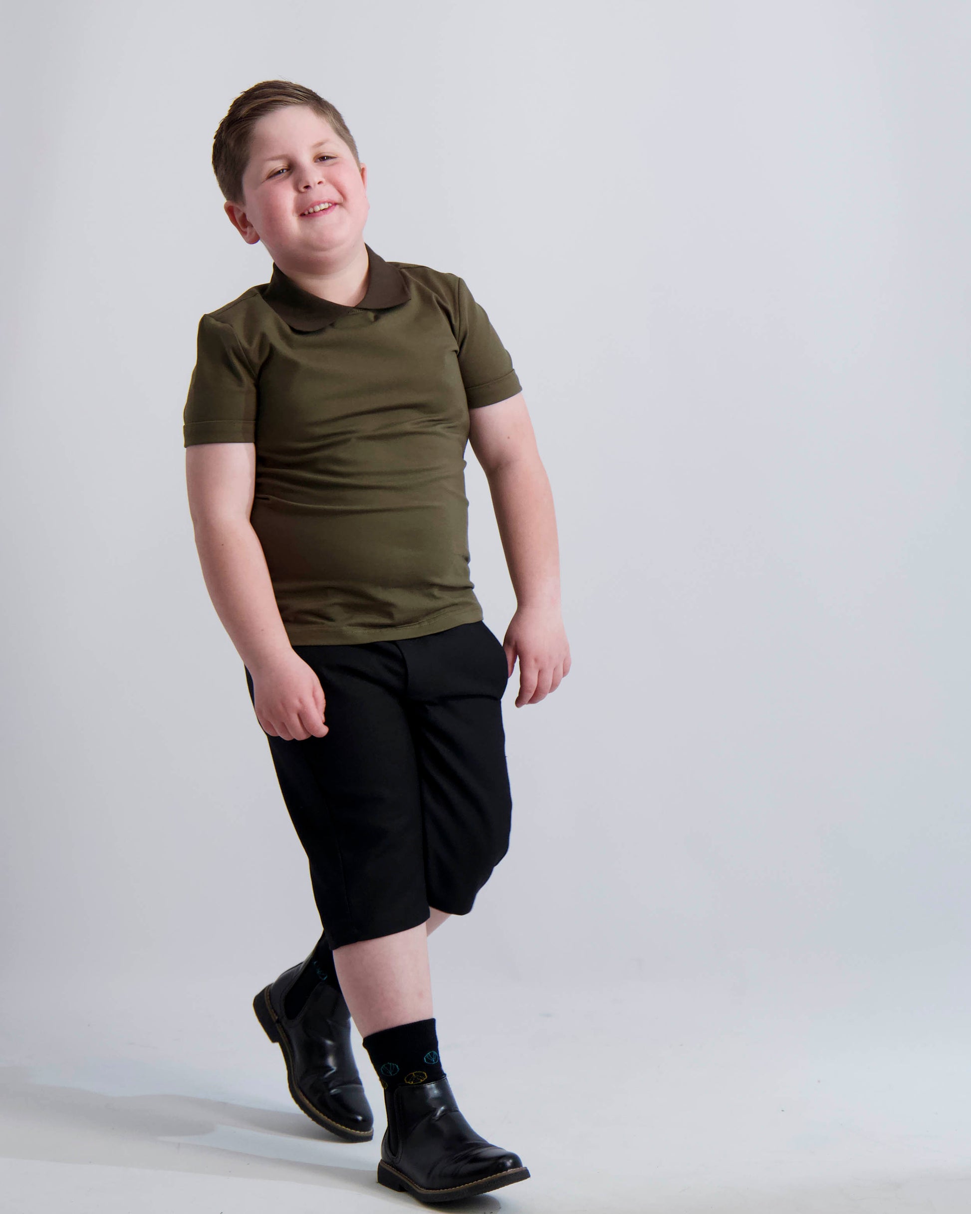 Our hunter collar top is made from a cotton/spandex blend for a comfortable fit with a little stretch. This top is a great layering piece under a blazer or sweater for that comfortable formal look.