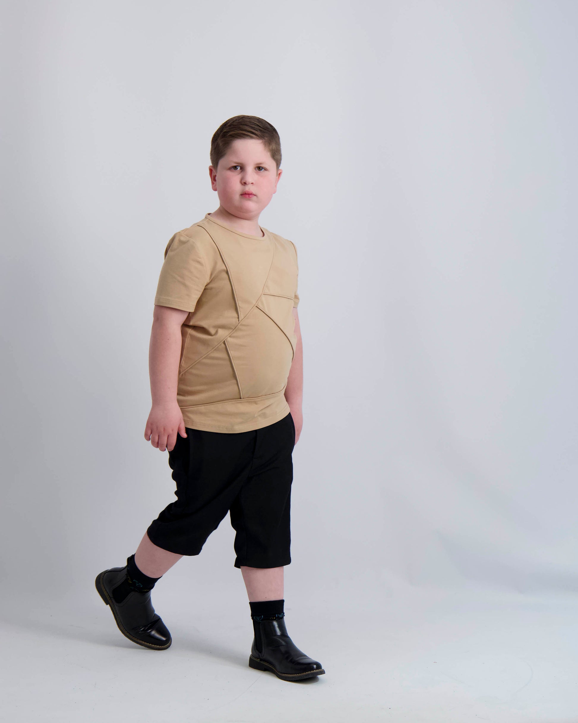 Our latte piping top is made from a cotton/spandex blend for a comfortable fit with a little stretch. The triangular abstract piping detail on this top makes it a staple in your wardrobe.