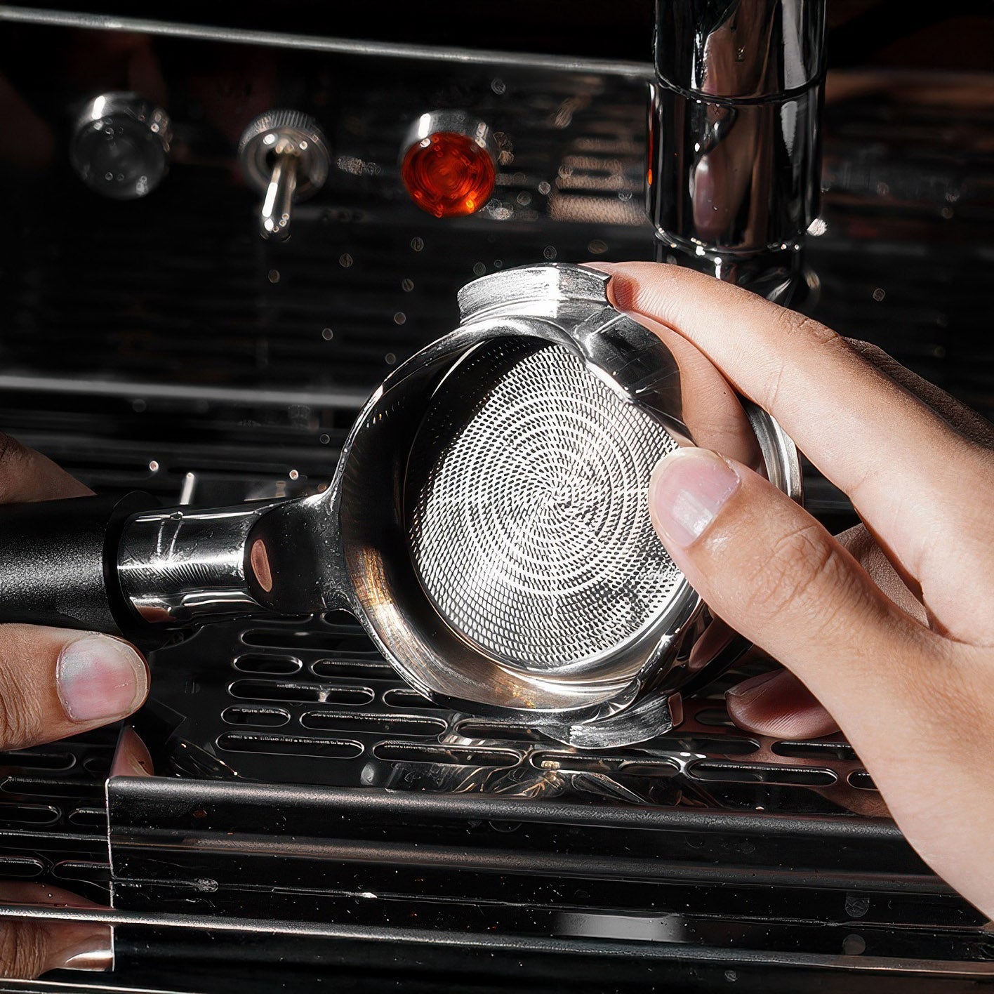 High-Precision Filtration Technology: 1800 precisely calibrated holes (0.24mm diameter) optimize extraction flow while preventing fine grounds from passing through, enhancing crema formation and flavor concentration.