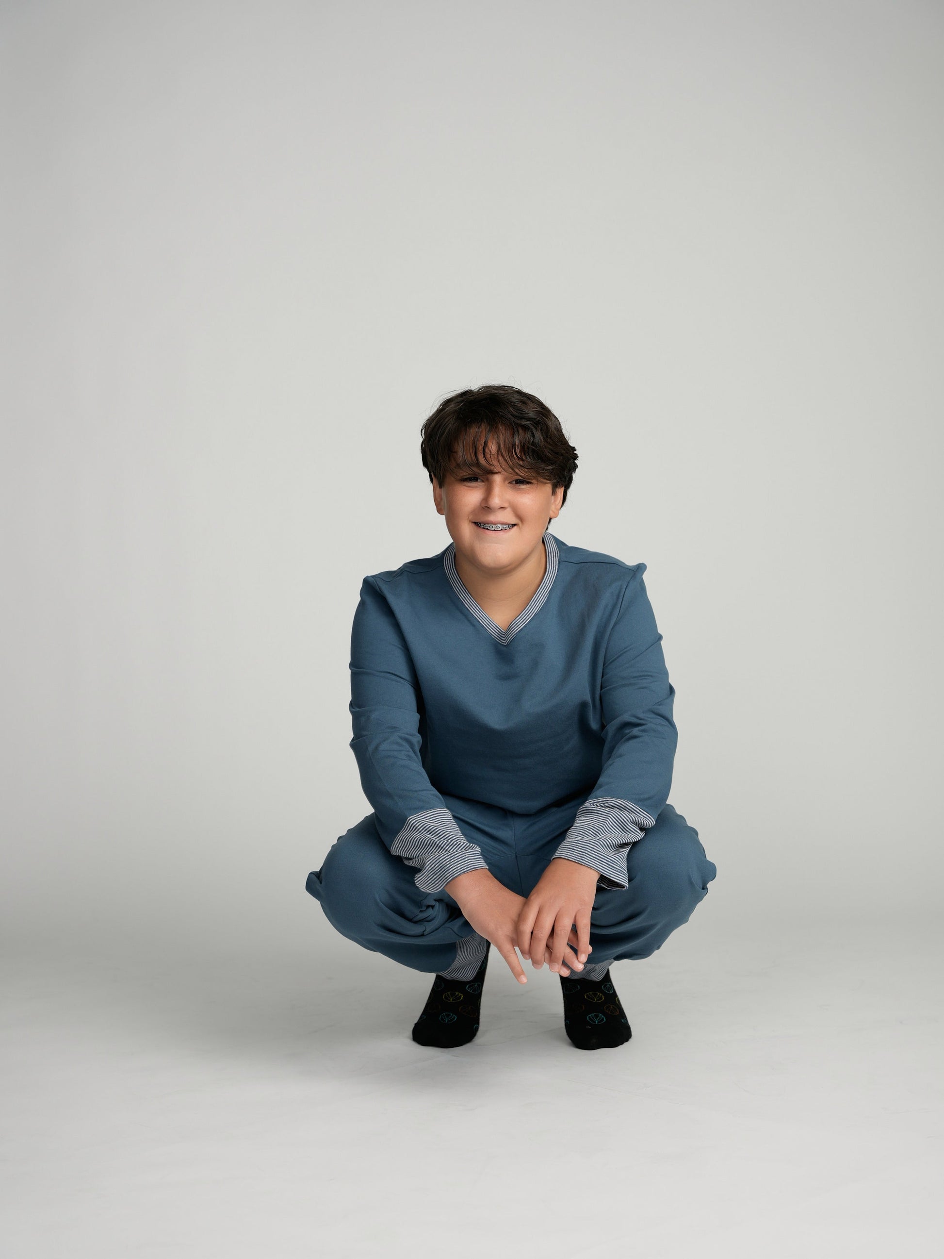 Our sapphire cuffed pajamas featuring a V-neck top, elastic waist and cuffed at the wrist and ankles, these will definitely keep you cozy all night long.