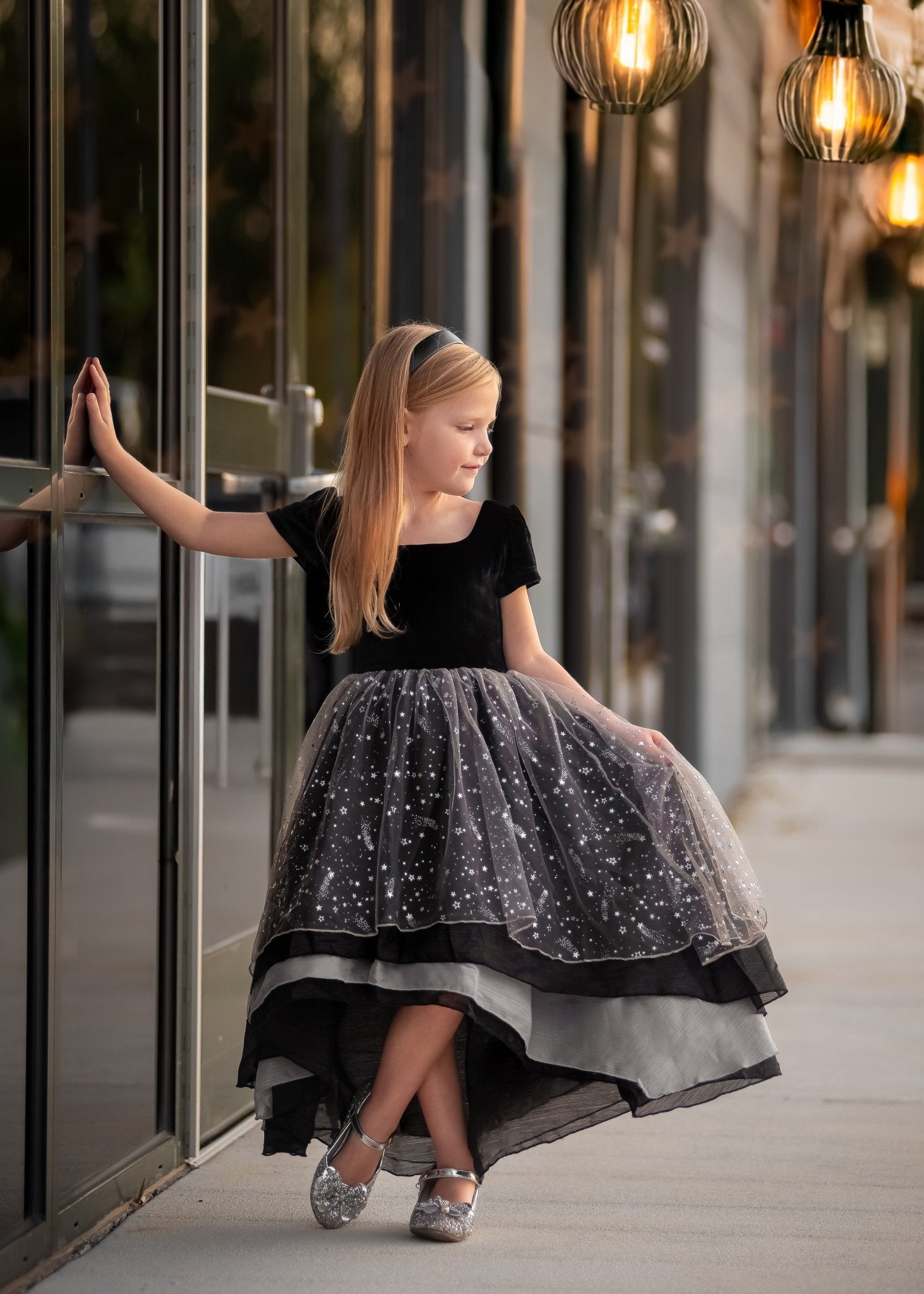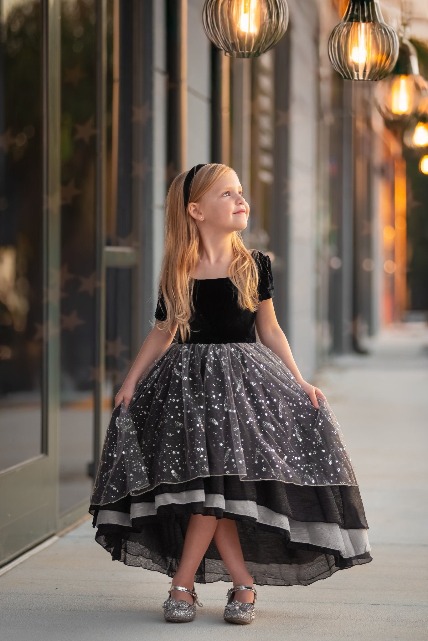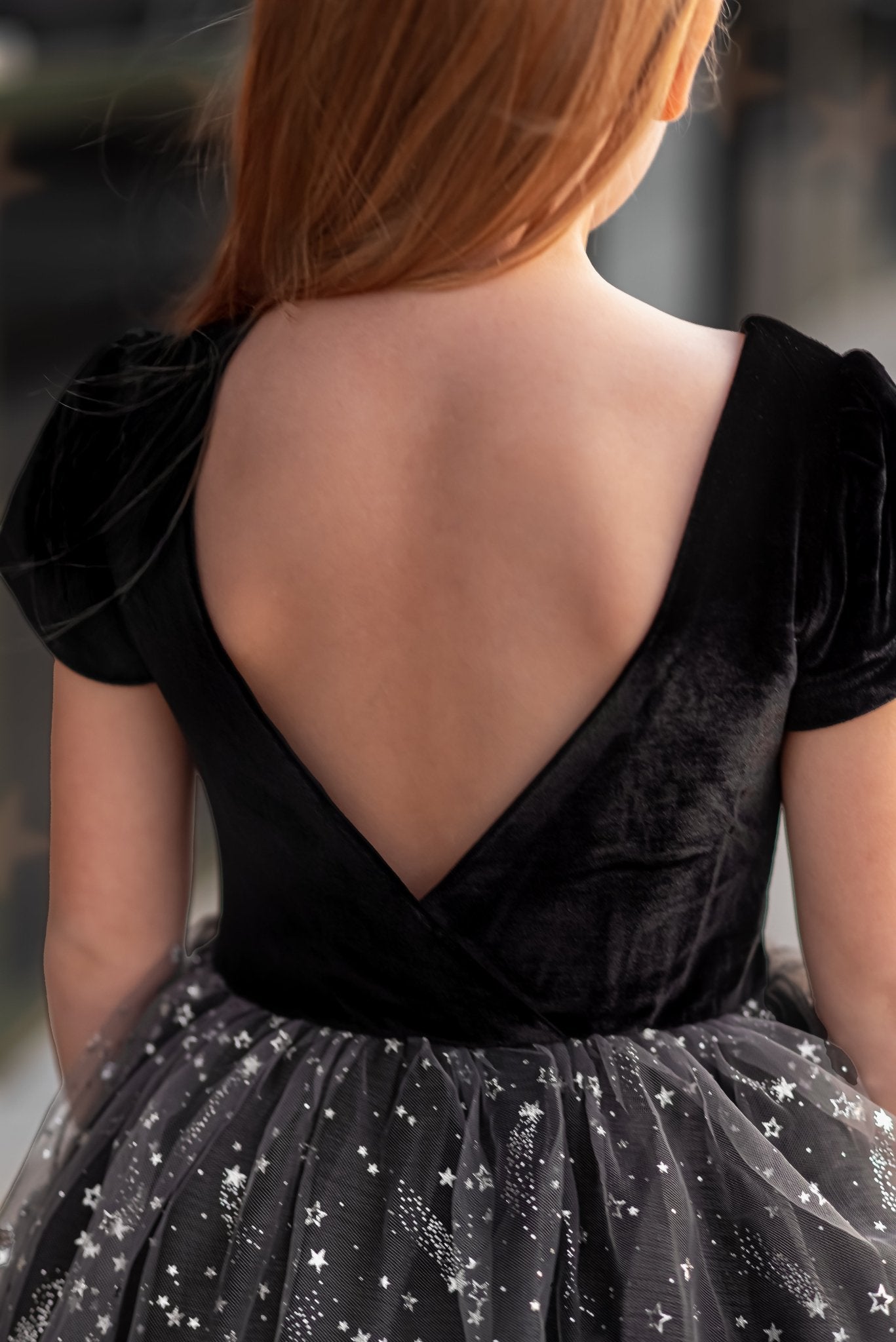 - Luxurious Design: Crafted with plush black velvet bodice and layers of star-speckled tulle, creating a magical constellation effect