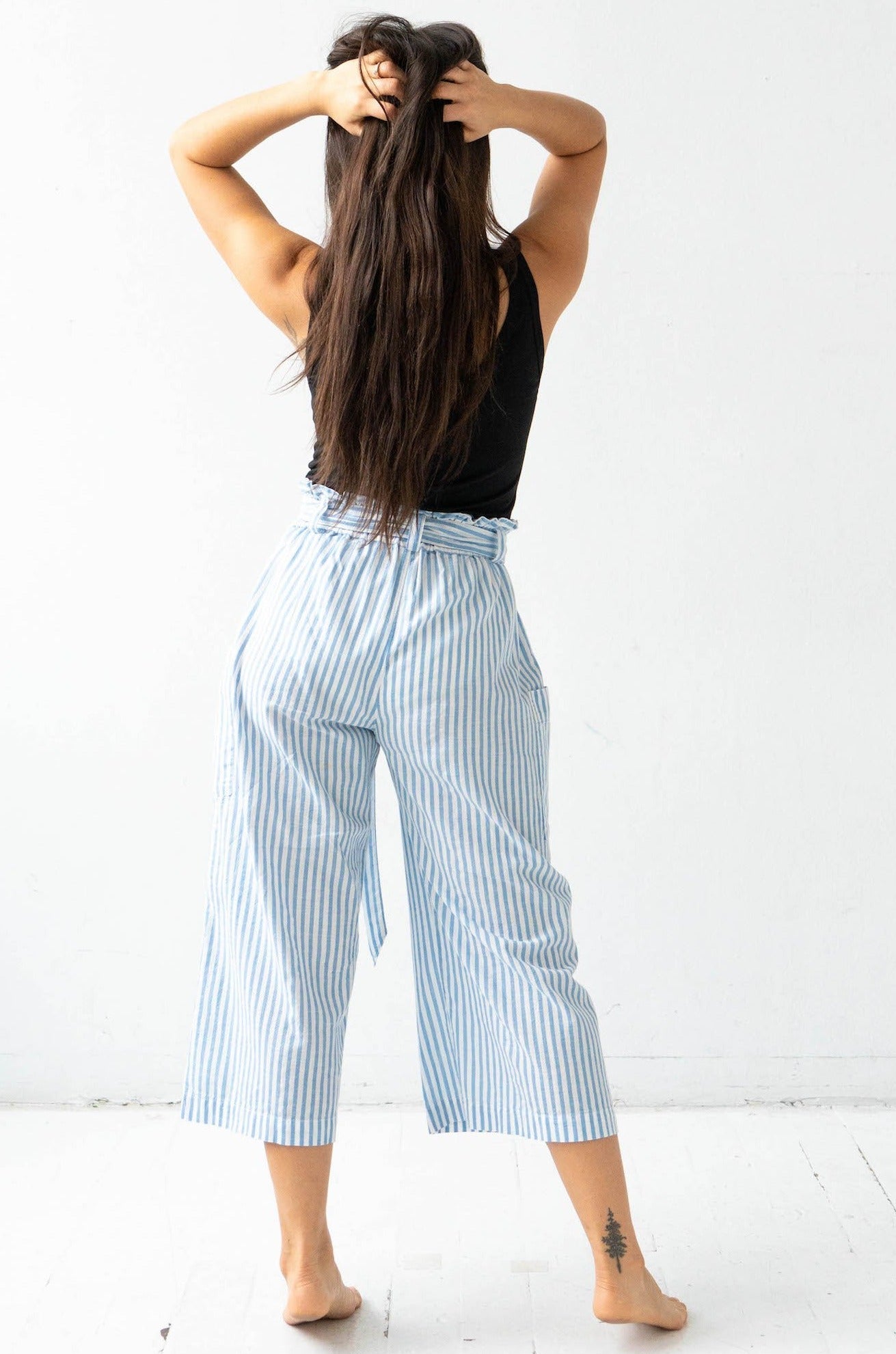 They are back! Our best selling Tie Waist Crop Pants. They are made from our favorite Lino cotton which looks and feels like linen, but is 100% Cotton and requires no ironing. Throw these on over your favorite swim suit or pair with a blouse for an elevate look. You will live in these pants all spring and summer. They have a paper bag waist with comfortable wide elastic, belt, and pockets!