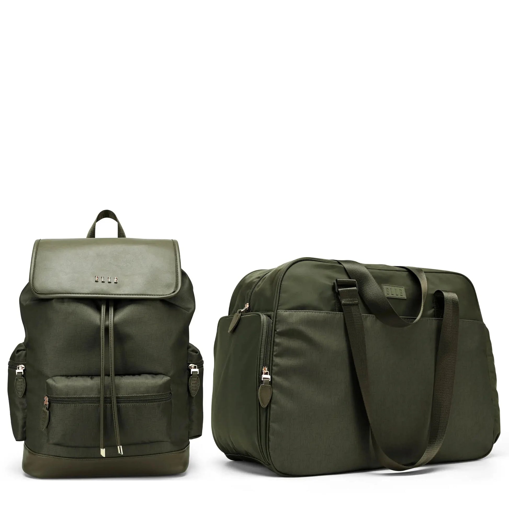 Adventure-ready and fashion-forward, the ELLE Wayfarer 40L weekender & 23L backpack set is your go-to duo for stylish, functional travel. Whether you’re planning a beach escape, heading to class, or commuting to work, this set combines modern design with comfort, durability, and spacious organization. Crafted from twill polyester with vegan leather accents, each piece is thoughtfully engineered for daily use and weekend getaways alike.