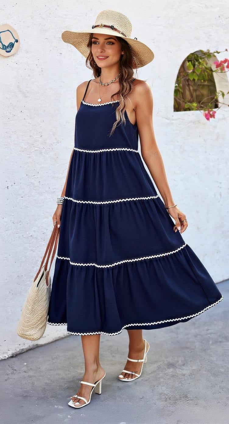 Stay cool and stylish in this ankle-length A-line dress, designed with slim spaghetti straps and a sleeveless cut for ultimate comfort. Made from 100% polyester, it feels light and flows gracefully with your movements. The loose silhouette suits all body types, ensuring ease throughout your day. Perfect for wearing alone or layered, this versatile dress effortlessly shifts from relaxed daytime outings to casual evening gatherings. Embrace a fresh, breezy look that adds a touch of effortless charm to your warm-weather wardrobe.